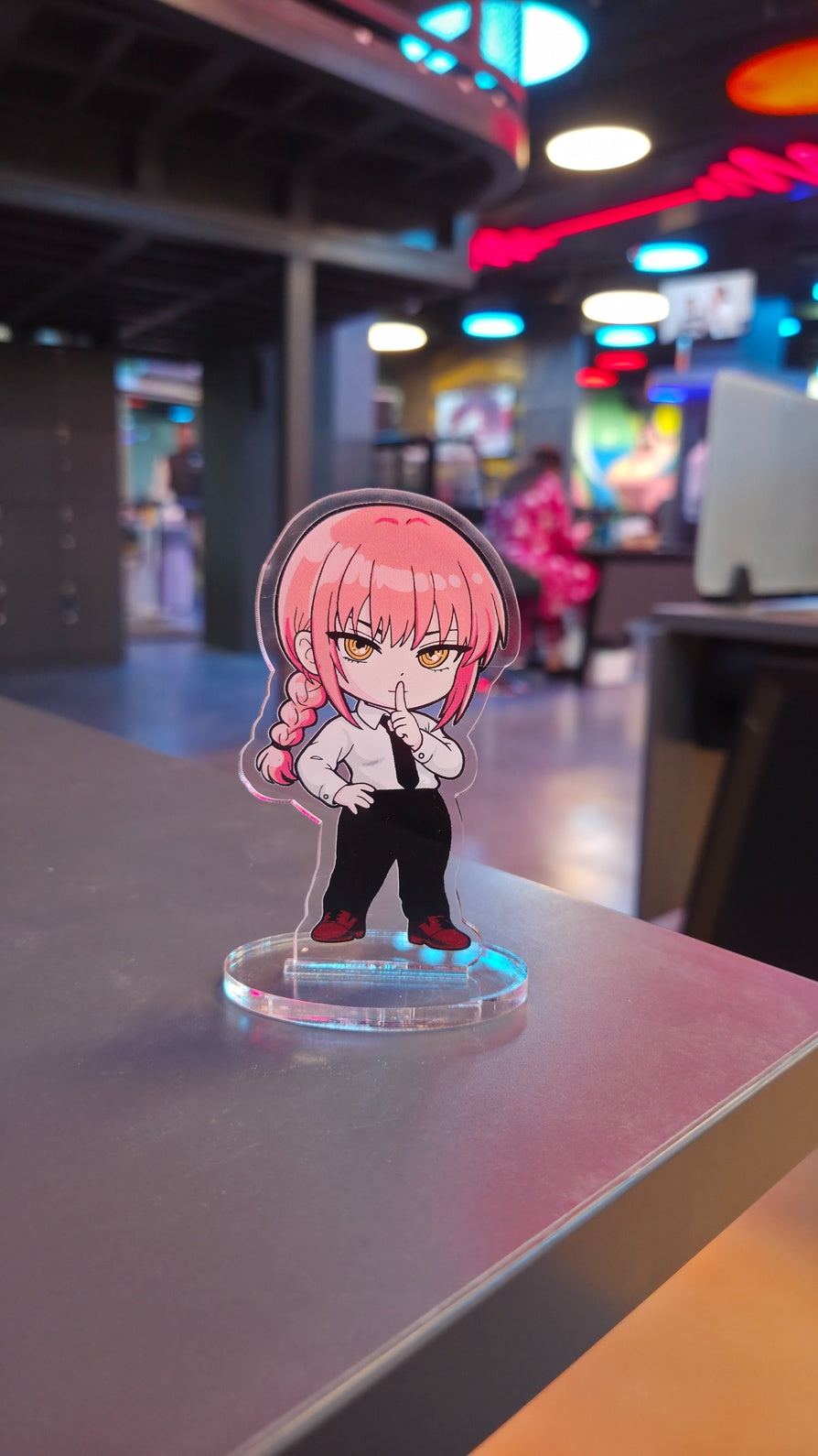 A premium pick among anime collectibles, this standee is made from high-quality 3mm acrylic and stands 10 cm tall. Its clean oval base fits seamlessly into any setup—ideal for collectors who appreciate understated yet impactful designs. The vibrant chibi artwork captures Makima’s composed yet intimidating aura, making it stand out both in person and on camera.