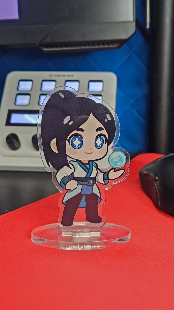 Bring calm, clean aesthetics to your battlestation with the Sage acrylic standee, a 10 cm chibi favorite among Gift ideas for gamers who love minimalist setups. The 3 mm acrylic and oval base make it sturdy, compact Valo merch and a perfect Gift for gamer boyfriends.